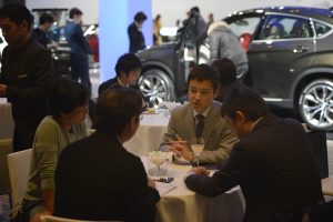 顧客対応のマーケティング・イベントで車両の説明をする、BMW時代の田中さん。BMWでは報道対応(広報部)と顧客対応(BMWブランドマネジメント本部)の境界がはっきり分かれていたので、広報部の田中さんが顧客の前に立つのは非常に稀だった。